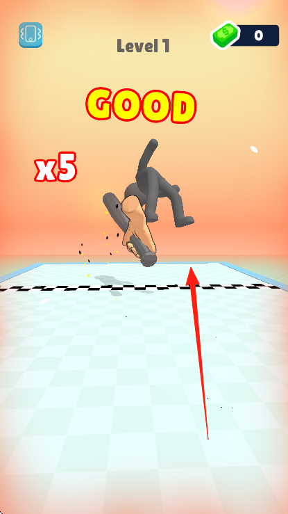 3、维持连击状态,把黑色小人击飞至终点线,即可获得【GOOD】评价,当连击数累积到x5时,就能顺利通关Level1。