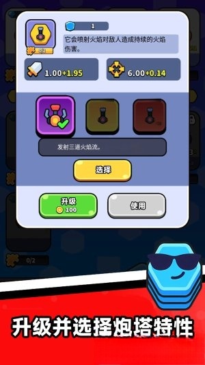 2.收集各类资源,用于提升武器与塔防的等级,以此增强攻击力、扩大射程范围,并强化特殊技能效果。