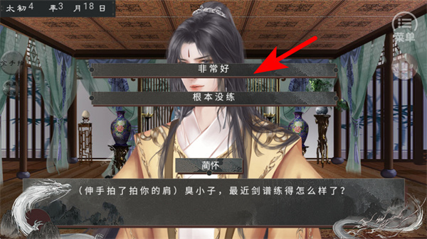 3、在对话选择界面,挑选“非常好”这类对应的回复内容,完成和角色的互动,以此推动剧情往不同分支方向发展。