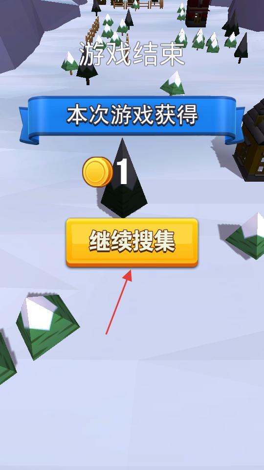 3、游戏结束后会显示获得的金币数量,点击“继续搜集”即可重新开始游戏,积累的金币可用于解锁相关内容。