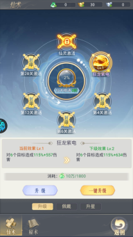 2、通过升级仙术来增强自身属性,以此提升战力(需注意:仙术等级不能高于自身等级)。
