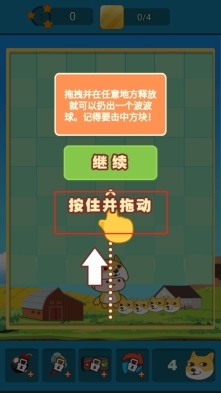 2、在关卡里操控波波球的发射方向,让它集中命中柴犬头像方块,要优先消除带有数字标记的方块,达成收集4个方块的目标。
