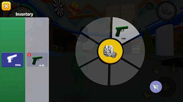 5、点击右上角的按钮可以切换动作或武器,你还能在购物车商城里购买全新的防具和武器!