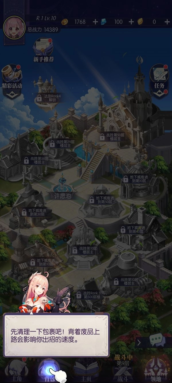 ②战斗结束后回到主界面,点击【背包】查看获得的掉落物品。