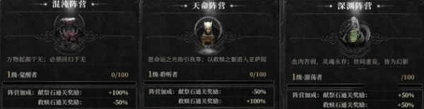 进入游戏后,玩家需要从三个初始职业中做出选择,这一选择将奠定你的冒险开端。完成基础教程后,你会接触到混沌、天命与深渊这三个不同的阵营。每个阵营都有其独特的属性加成机制:加入混沌阵营能够获得双倍的献祭石,但救赎石的获取量会减半;选择天命阵营则会降低献祭石的消耗,同时提升救赎石的获取效率;而深渊阵营对两种资源的收益进行了平衡处理。