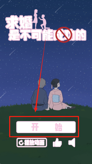 1、轻触主界面的开始按钮,即可开启这场充满恶作剧趣味的求婚破坏挑战。
