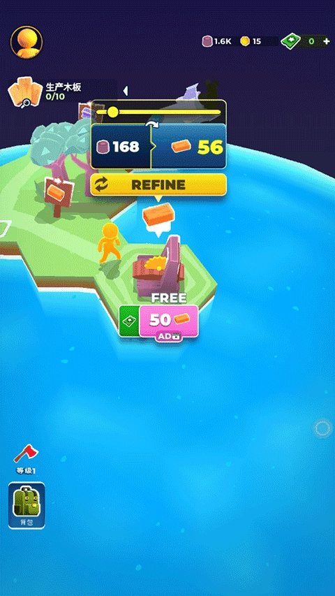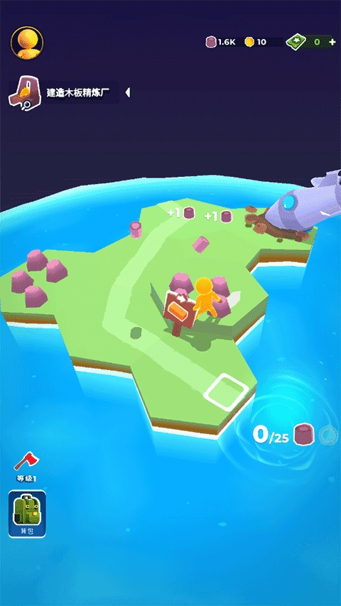 2、将收集到的材料放置在空旷区域,即可生成新的土地,从而开辟出更多可砍伐的木材资源。