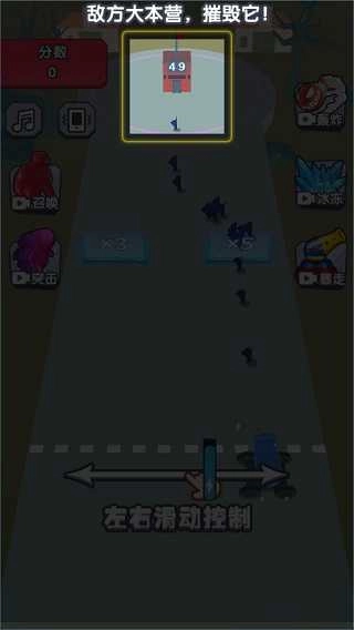 3、在游戏里,数字越大,生成的士兵数量越多。敌方大本营就在前方,通过合理分配士兵并依靠数量优势摧毁敌方基地。
