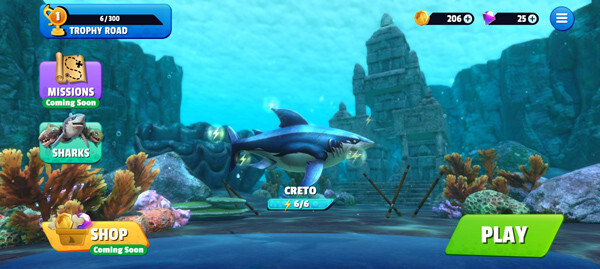 3.鲨鱼家族:有各种各样的鲨鱼角色等待解锁,无论是身手敏捷的灰鲭鲨,外形独特的锤头鲨,还是异常凶猛的虎鲨,亦或是闻名遐迩的大白鲨,每一种鲨鱼都有着独一无二的特性和专门的技能。玩家完全可以根据自己的喜好和游戏风格,选择最适合自己的“海中利器”,开启一段冒险之旅。