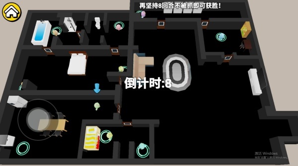 3、在躲猫猫游戏里,会有不少角色和你共同出现在同一个场景中,你得找到合适的位置来隐藏自己的身形。