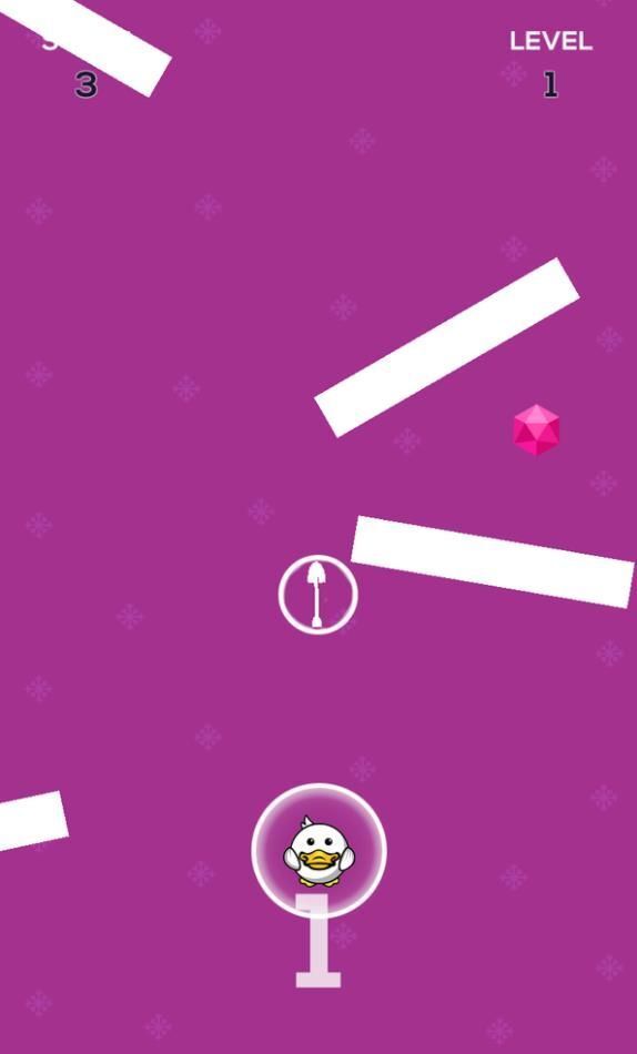 1、玩法非常简单,只需用指尖自由拖动护盾,保护可爱的小鸭子持续上升就可以了。