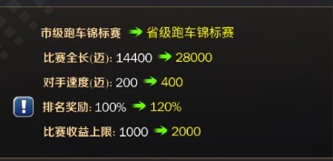 这里说明一下,赛事中心的升级肯定是最划算的,但升级会增加赛事的难度。要是玩家的座驾实力不够,升级之后反而可能因为排名下滑导致收益变少。所以建议大家在确保自己能在当前赛事里拿到第一名之后,再考虑升级到下一个等级。