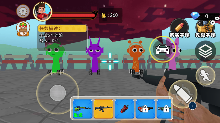 3、点击创建后,需选择生成枪,借助射击操作来生成角色或怪物。