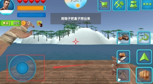 3、使用钩爪捕捉必要的资源,例如海上的碎片、藻类、箱子和其他物品,这些收集到的材料将对您的生存与发展起到关键作用。
