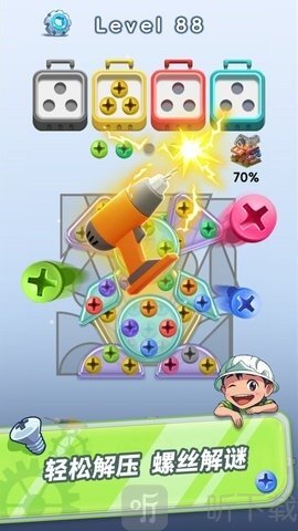 拧呀拧螺丝的核心玩法类似于消消乐,玩家需在箱子里找出同色螺丝,凑成三个一组来触发消除,清空所有螺丝就能通关。看似简单的玩法背后,却藏着让玩家们绞尽脑汁的谜题——游戏里每一关都经过巧妙设计,只有具备出色的智慧与巧妙的思维,才能成功解谜、顺利过关。