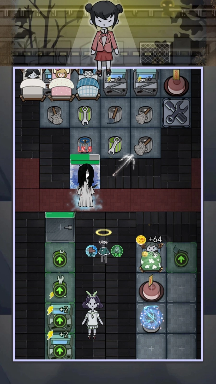 猎梦者宿舍之伥鬼是一款Q版策略塔防游戏。游戏中,玩家扮演宿舍守护者,需在猛鬼夜袭前建立塔防抵御入侵。游戏采用卡通暗黑画风,营造出惊悚又可爱的氛围。玩家可自由规划宿舍布局,建立不同功能的防御建筑,并利用多样道具增强防御力。伥鬼模式中,被淘汰的队友会化身为伥鬼协助猛鬼,增加游戏挑战性。游戏融合策略与冒险元素,关卡设计巧妙,难度递增,为玩家带来紧张刺激且烧脑的防御战体验。