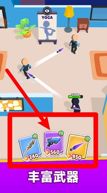 3.丰富武器:解锁多样强力武器,自由组合装备,打造独特潜行暗杀风格完成挑战。