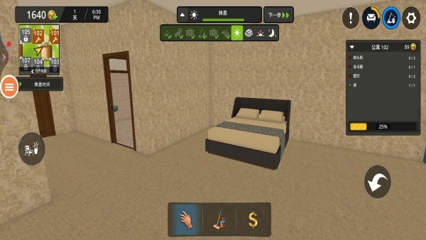 3、进入杂乱的102公寓后,首先用清洁工具清理垃圾与污渍,再依据界面提示一步步整理房间。
