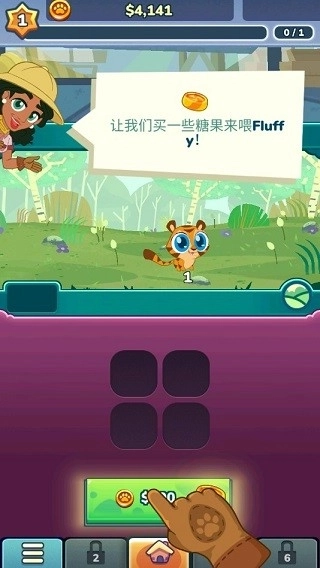 3、当然啦,你也可以通过喂养来养成这些动物,如买一些糖果来喂养动物园里的动物,选择金币来购买食物,然后把糖果给老虎,它们会为您的动物园赚取更多金币。