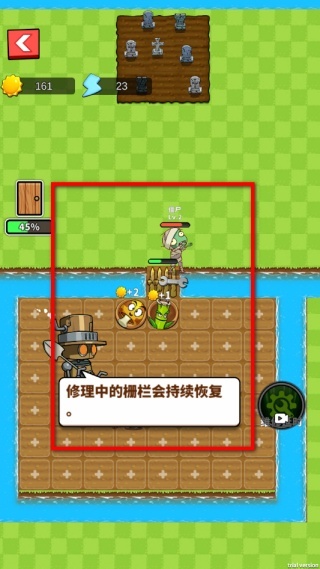 4、留意修理过程中的栅栏,它会持续恢复状态,并且建造的植物会自动发挥作用,产出资源或是抵御来犯的敌人,确保农场的安全。