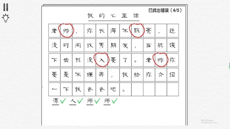 1. 玩家得在规定时间里认真查看屏幕上呈现的句子,找出里面藏着的错别字。