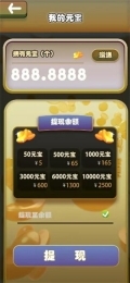 这款游戏能赚钱,具体是通过积累元宝然后提现的方式。游戏里有不少获取元宝的途径,等你攒够元宝后,进入“我的元宝”页面,接着挑选想要提现的金额——不同提现金额对应的元宝消耗量是不同的。只要你拥有了足够数量的元宝,点击提现按钮后,钱就会立刻到账微信余额。