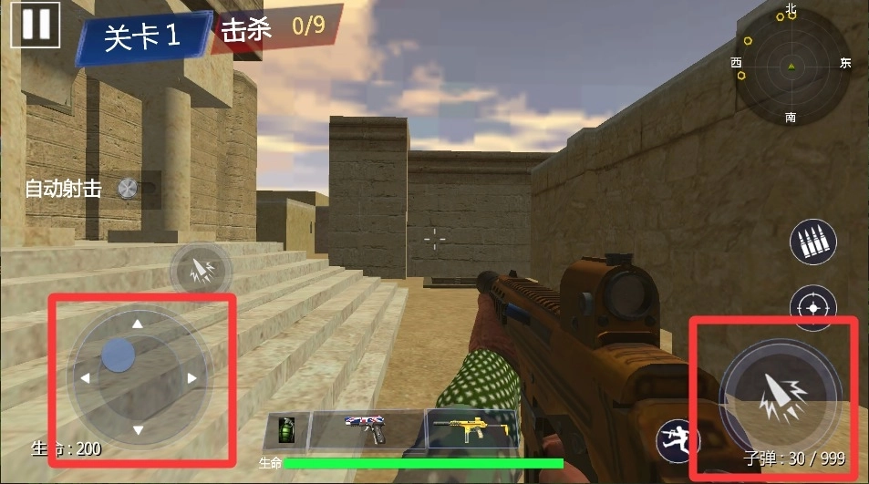 4、按住射击键进入瞄准模式,准星变红时松开手指爆头击杀,连续消灭五个目标可触发慢动作特效。