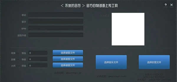 打开后会呈现一个自制谱工具界面,我们直接在电脑上操作,就能往工具里上传音乐和音乐封面。上传完成后,按照工具的提示完成各项填写,比如歌名、歌手和谱面作者——这三项都可以自由填写,不过最好还是依据歌曲本身的信息来填,谱面作者填自己即可。填写过程中有个比较关键的点,就是BPM的填写,这一步要谨慎对待,可以在网上找一个BPM分析工具,对歌曲进行分析后再填写对应的数值。