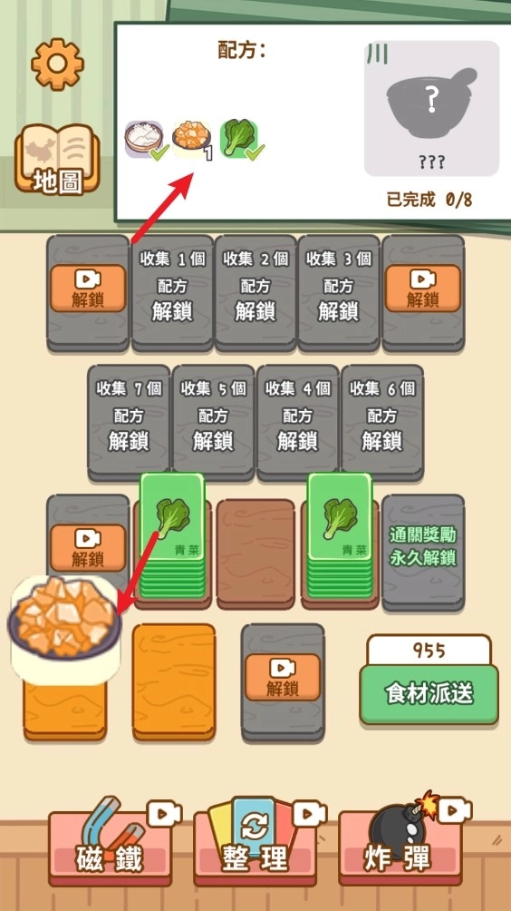 6、凑齐了上方的食材之后就可以解锁菜谱。
