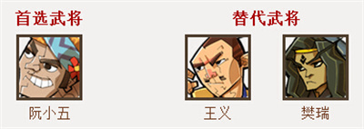 阮小五(首选武将),王义、樊瑞(替代武将)
