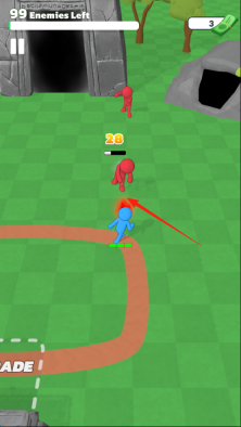2、蓝色小人碰到红色敌人时,可借助点击、滑动之类的操作,和敌人展开战斗对决。