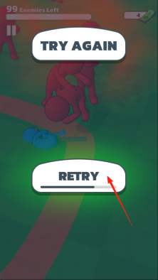 3、战斗失利后,点击“RETRY”按钮,重新发起挑战,争取通关。