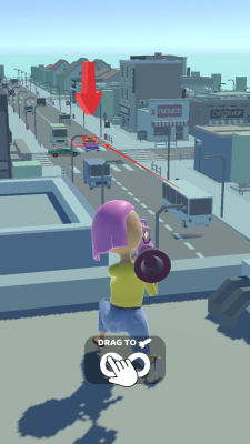 1、卡通风格场景:以鲜明亮丽的卡通画风搭建城市环境,建筑与车辆的造型可爱又生动,再配上少女角色灵动的设计,营造出轻松明快的视觉氛围,让破坏的过程更添趣味性。