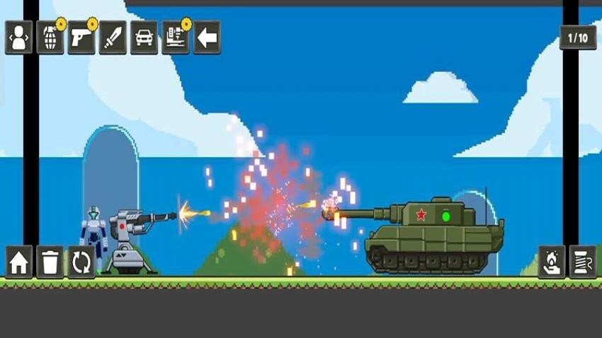 创造模拟器游戏手机版是一款精彩的横版射击闯关游戏,你将化身坦克指挥官开启刺激冒险。通过点击左右按钮灵活操控坦克前进并迎击敌军,精准点击射击将敌人逐个消灭。游戏中还能收集金币,用于升级道具、强化坦克性能。快来操控坦克突破重重关卡,赢取最终胜利吧!