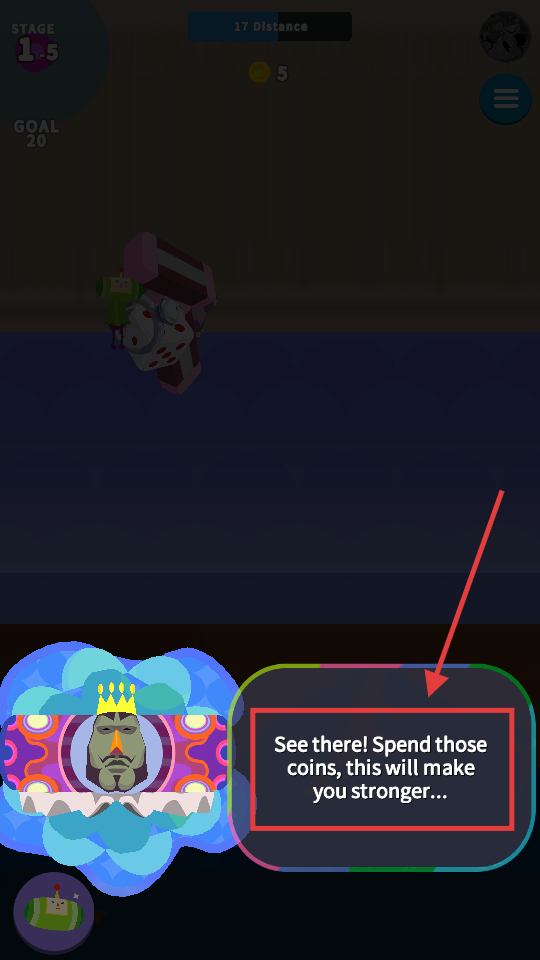 3、搭建物品兑换金钱的升级体系,把前进距离和金钱获取数量相关联,成长过程能提供清晰的数值反馈。