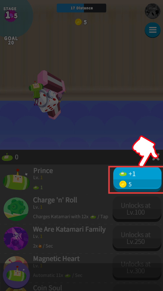 4、点击升级界面的蓝色按钮,消耗5枚金币提升Prince等级,以此增强冒险能力。