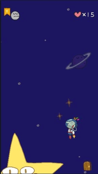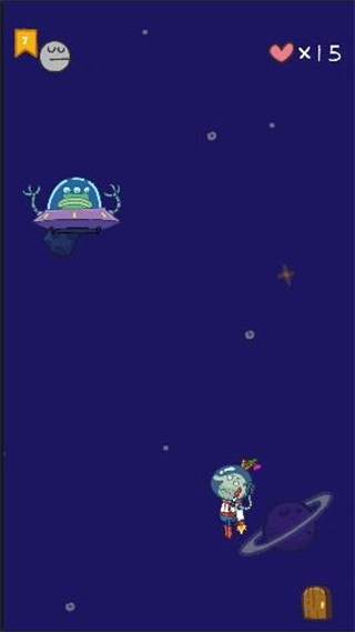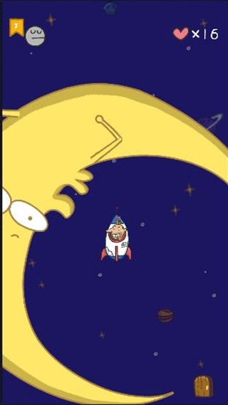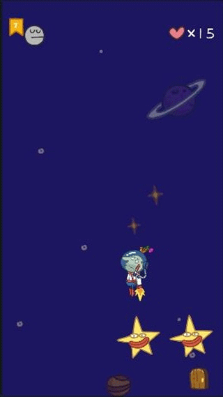 这个关卡要跟着飞碟前进,途中得避开几个旋转的大星星。