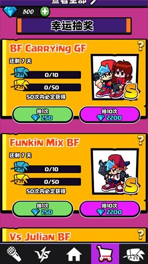黑色星期五之夜最新版本是一款超考验玩家手速与节奏感的音乐游戏,这里有各式各样的角色可供选择,随着挑战的推进,歌曲难度会逐步升级,要是你觉得这款游戏还不错,那就赶紧来体验一番吧。