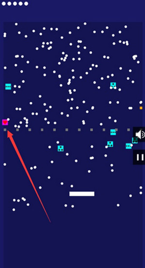 在玩这款游戏时,玩家需操控横条让小白球反弹,以此击碎一块块砖块。若想将所有方块都打完,关键技巧是把小白球打到两排方块的中间位置——就像下图展示的那样,这样小白球便不会掉落,而是会一直在上方持续反弹!