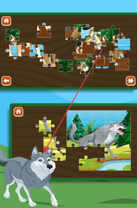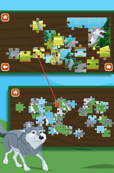2、仔细观察每一块拼图碎片的形状与图案特征,通过手动拼接的方式,将碎片逐步组合,最终形成完整的狼的图像。