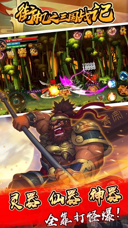 1. 选取三国时期的经典战役,结合街机的趣味玩法,使玩家在诙谐的剧情里,体会三国时代的经典战斗。
