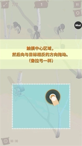 1、在游戏里,玩家得先触摸中心区域来唤出弓箭,接着通过反向划动的方式拉弓,以此完成瞄准操作;