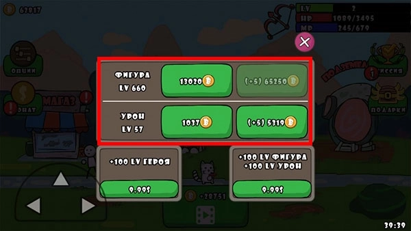 2、点击绿色图标就能完成升级操作,左侧的图标每点击一次可提升一级,右侧的图标每点击一次则能提升五级。