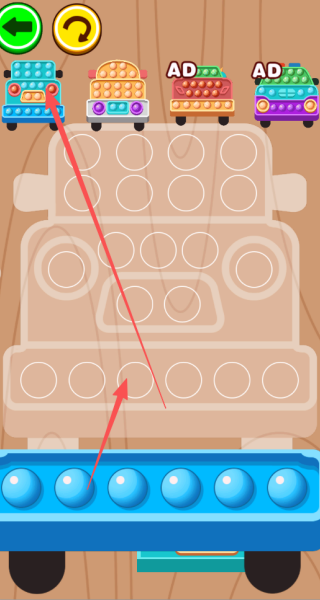 4、气泡点击游戏:随机选定一个模板,随后依照该模板的样式,把泡泡逐个放置到位。