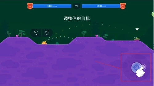 1、拖动右边的拉杆,将落点对准对面的坦克。