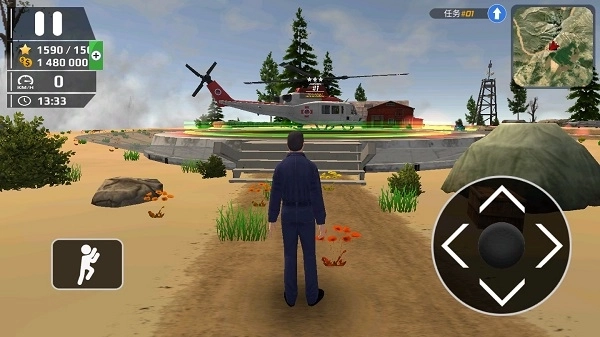 7、点击开始发动,前后左右推动可以控制直升机的飞行高度(左侧),滑动虚拟摇杆可以控制直升机飞行方向