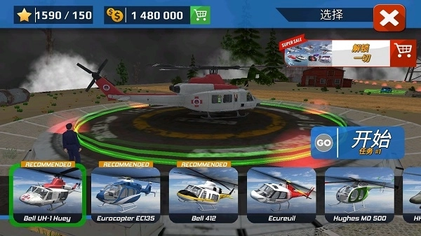 3、起飞前检查直升机,使直升机变得完美,并体验驾驶游戏的乐趣