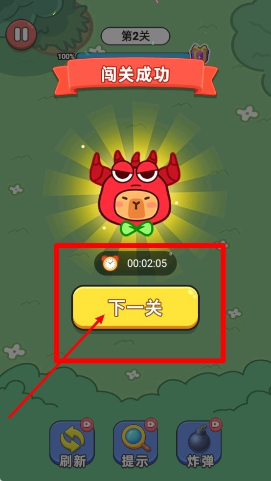 3.通关之后,点击“下一关”按钮就能开启新的挑战,系统会记录完成所用的时间,并且自动保存当前的进度数据。