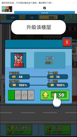 5、只需在金币积累到一定数量后,对楼层产品线进行升级就行。同时,及时优化产品选择并提高工人的工作效率,能显著增加你的收益。