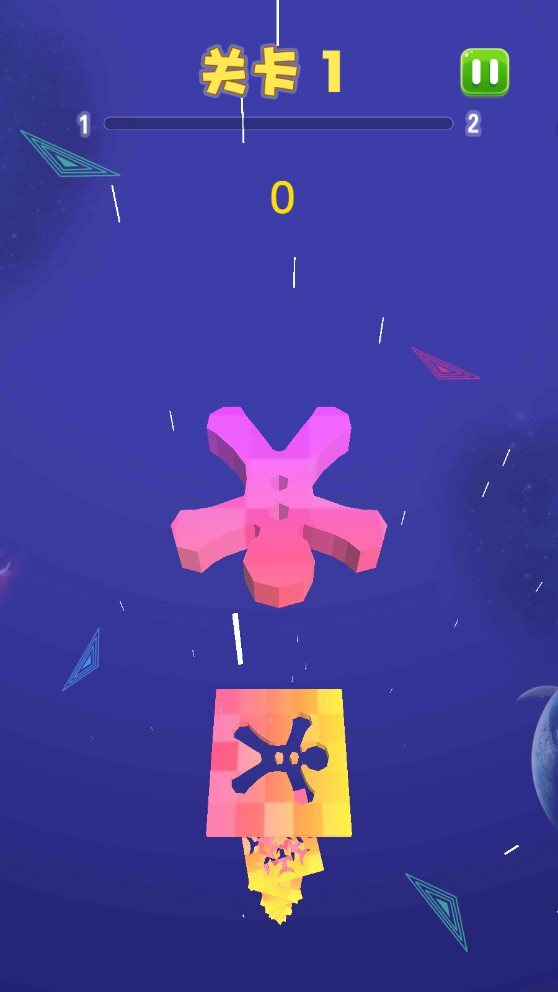 2、玩家需要灵活滑动手指进行操作,完成游戏任务,让方块顺利穿过图形。